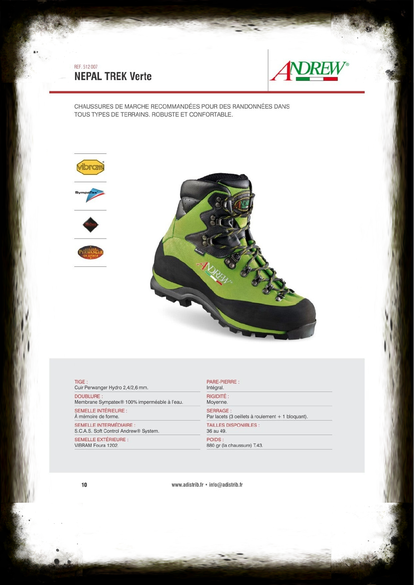 CHAUSSURES DE MARCHE RECOMMANDÉES POUR LES TERRAINS DIFFICILES DE TOUTES SORTES. DURABLE ET CONFORTABLE.